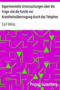 "Experimentelle Untersuchungen über die Frage »Ist die Furcht vor Krankheitsübertragung durch das Telephon berechtigt«?" by Carl Weiss is a scientific publication written in the early 20th century. This work discusses the potential health risks associated with using telephones, particularly concerns regarding the transmission of infectious diseases...